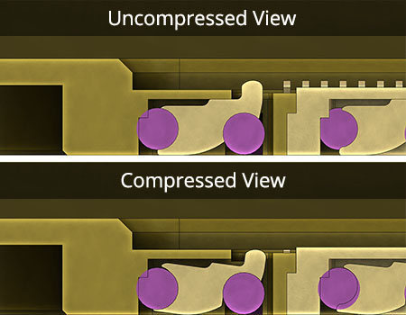 | Load Board Protected from External Debris: Front elastomer acts as a shield, preventing debris and other contaminants from entering contact/load board pad interface |